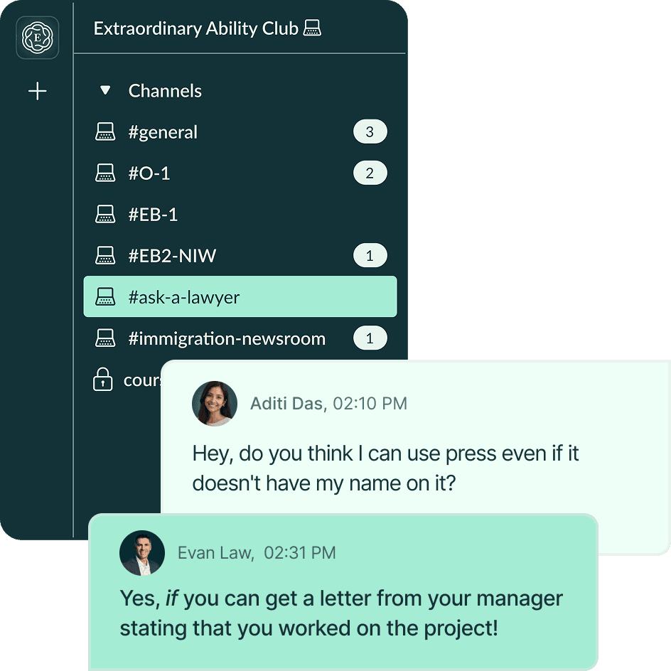 Join the Extraordinary Ability Club, the verified, invite-only community where ambitious immigrants and talent visa aspirants learn, connect, and grow together.