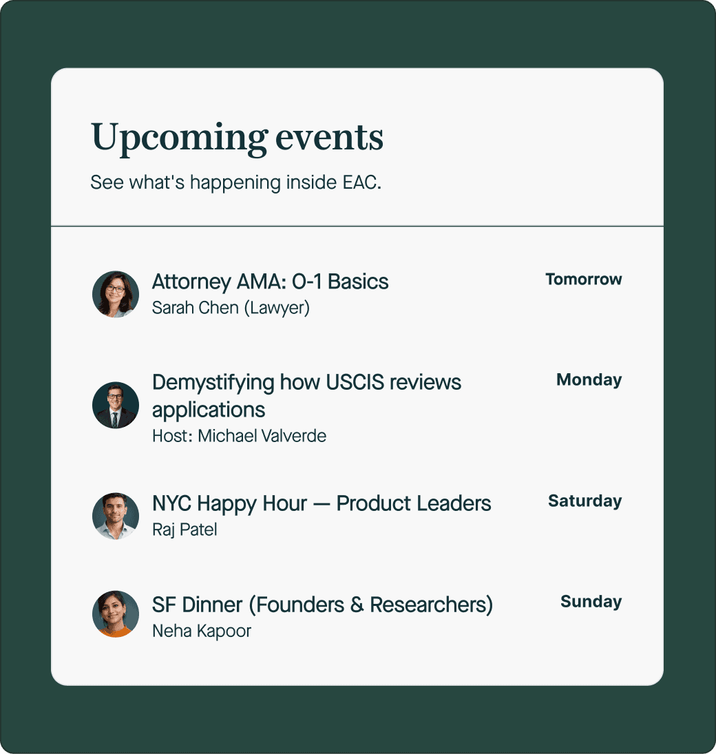 Join the Extraordinary Ability Club, the verified, invite-only community where ambitious immigrants and talent visa aspirants learn, connect, and grow together.